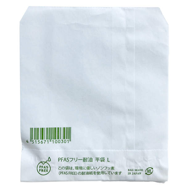 主に手提げ袋などの紙製品を製造・販売するメーカー、パックタケヤマの耐油袋。この耐油袋はPFASフリー商品で、人にも環境にも優しい商品です。