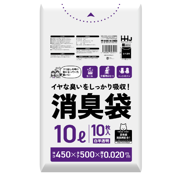 【ポリ袋】消臭袋 AS16 10L 白半透明 450×500mm(10枚入)
