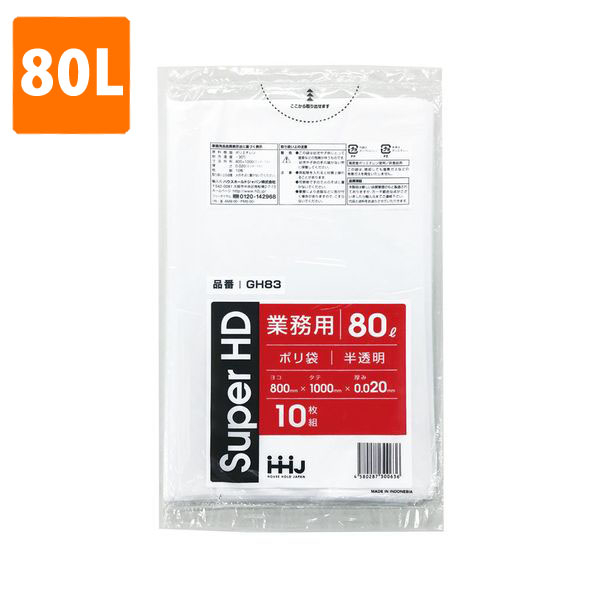 ≪束販売在庫限≫【ポリ袋】 80Lゴミ袋(厚み0.020・半透明) GH-83 <10枚入り>